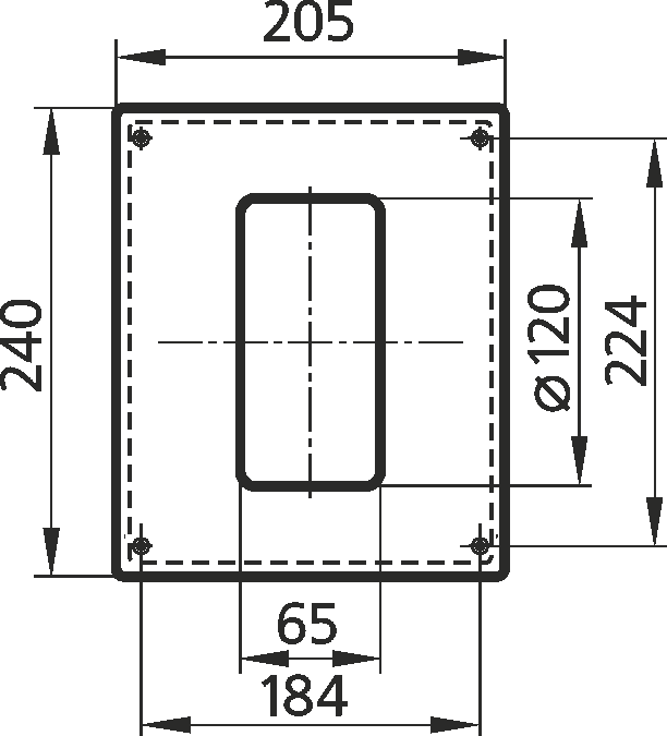 612ПТВ, Площадка торцевая вертикальная пластиковая 205x240 фланец 60x120